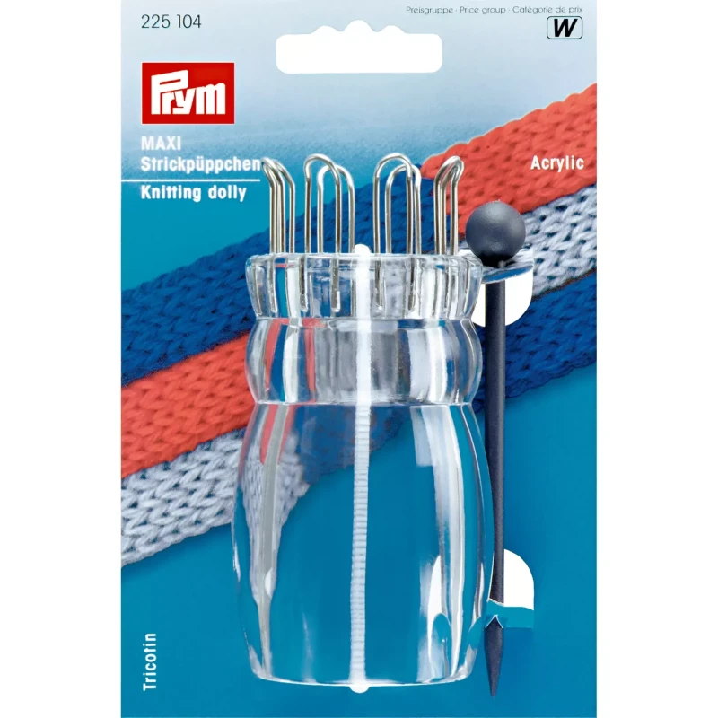 The Prym MAXI Knitting Doll, also known as a cord knitting machine, combines the charm of traditional crafting with modern design. Crafted from durable transparent acrylic and fitted with eight stainless steel pins, it makes creating smooth, even cords effortless. A delightful tool for knitters of all ages, it’s perfect for adding a touch of creativity to your projects.